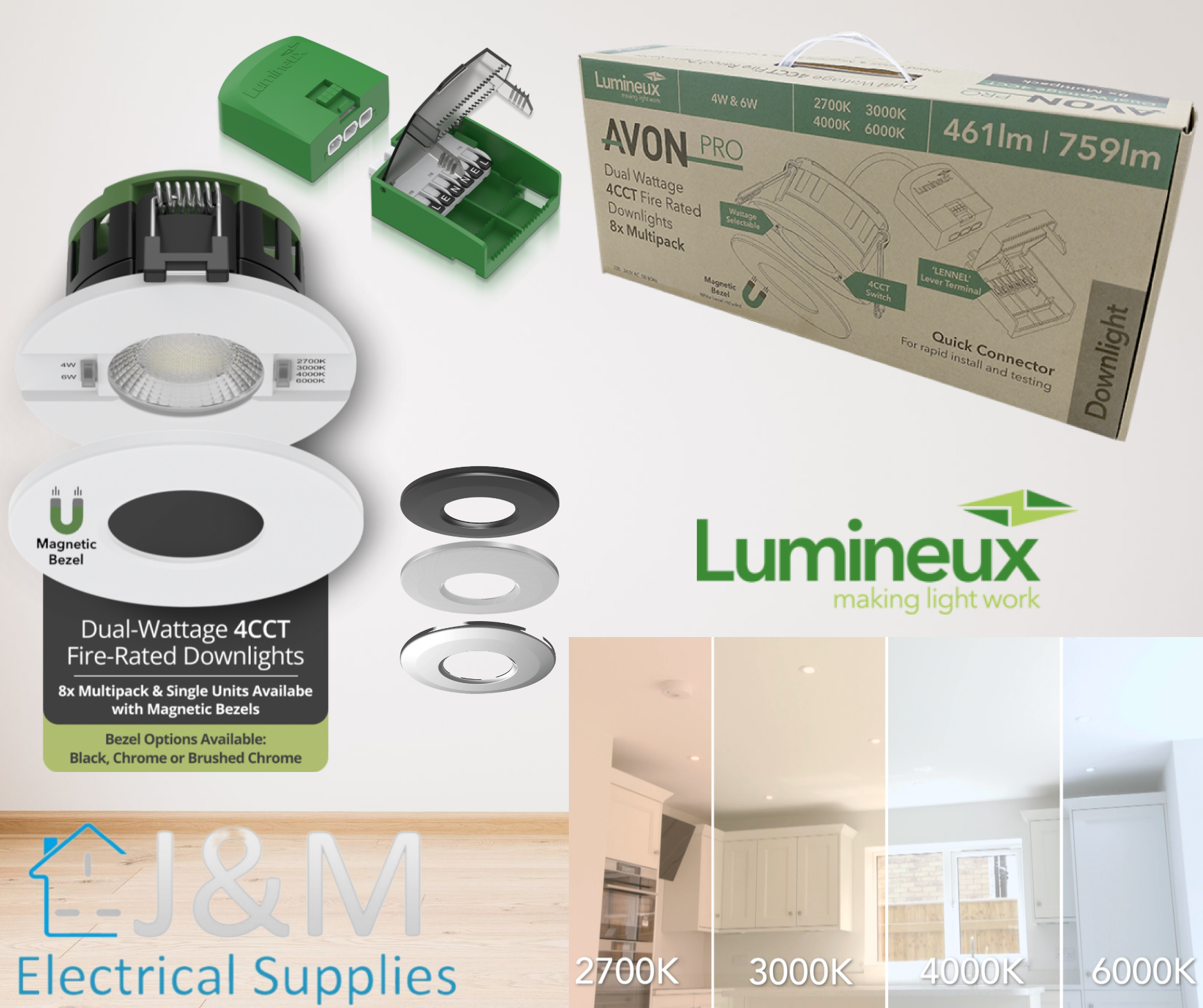 Lumineux 430850-MP Avon Pro 4W & 6W Fire Rated IP65 Downlight 4CCT White 60D MP 8 Pack